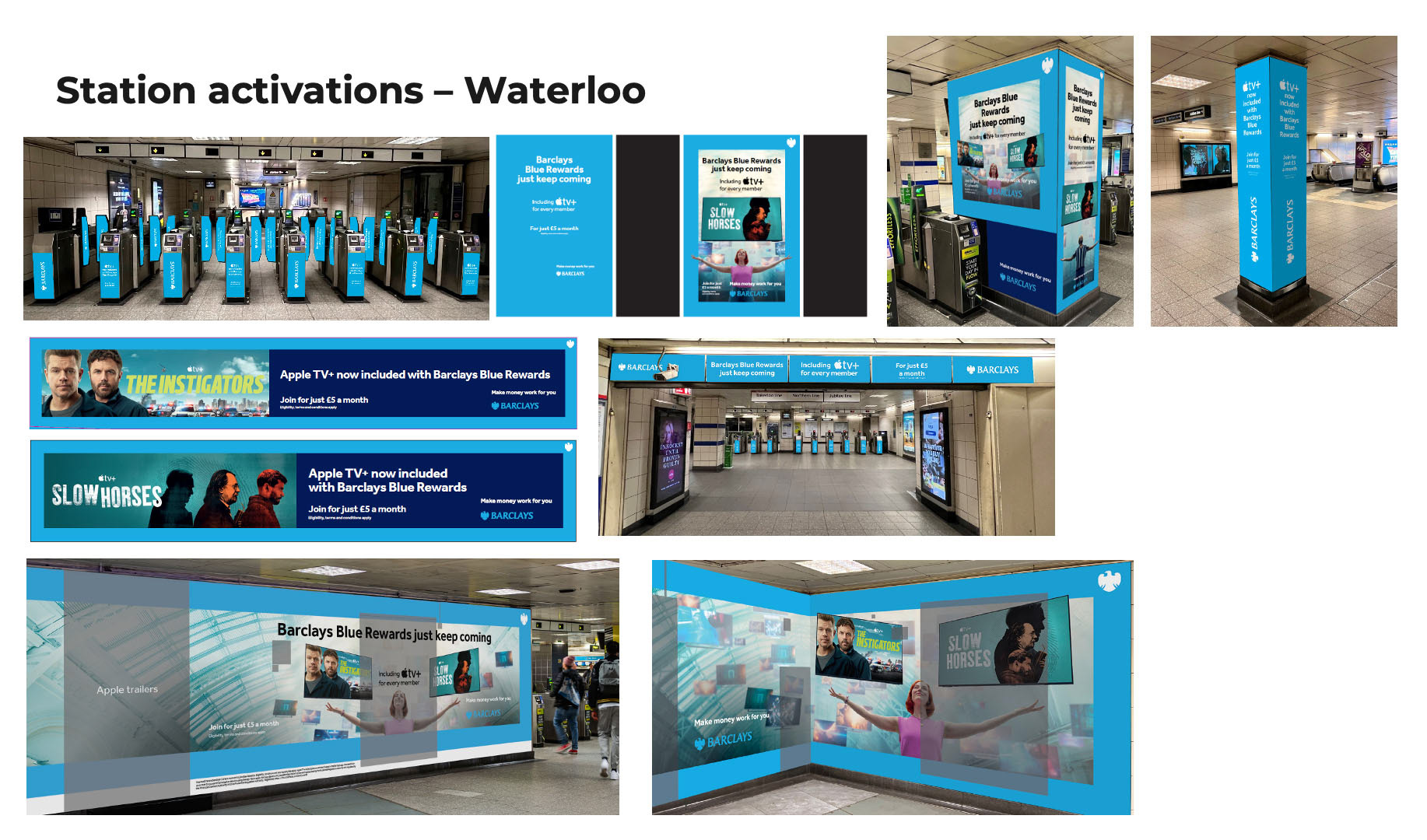 Conceptualise campaign ideas using Midjourney for stakeholder signoff and subsequently design print and digital assets for various OOH/DOOH executions at Euston, Canary Wharf and Waterloo train stations.